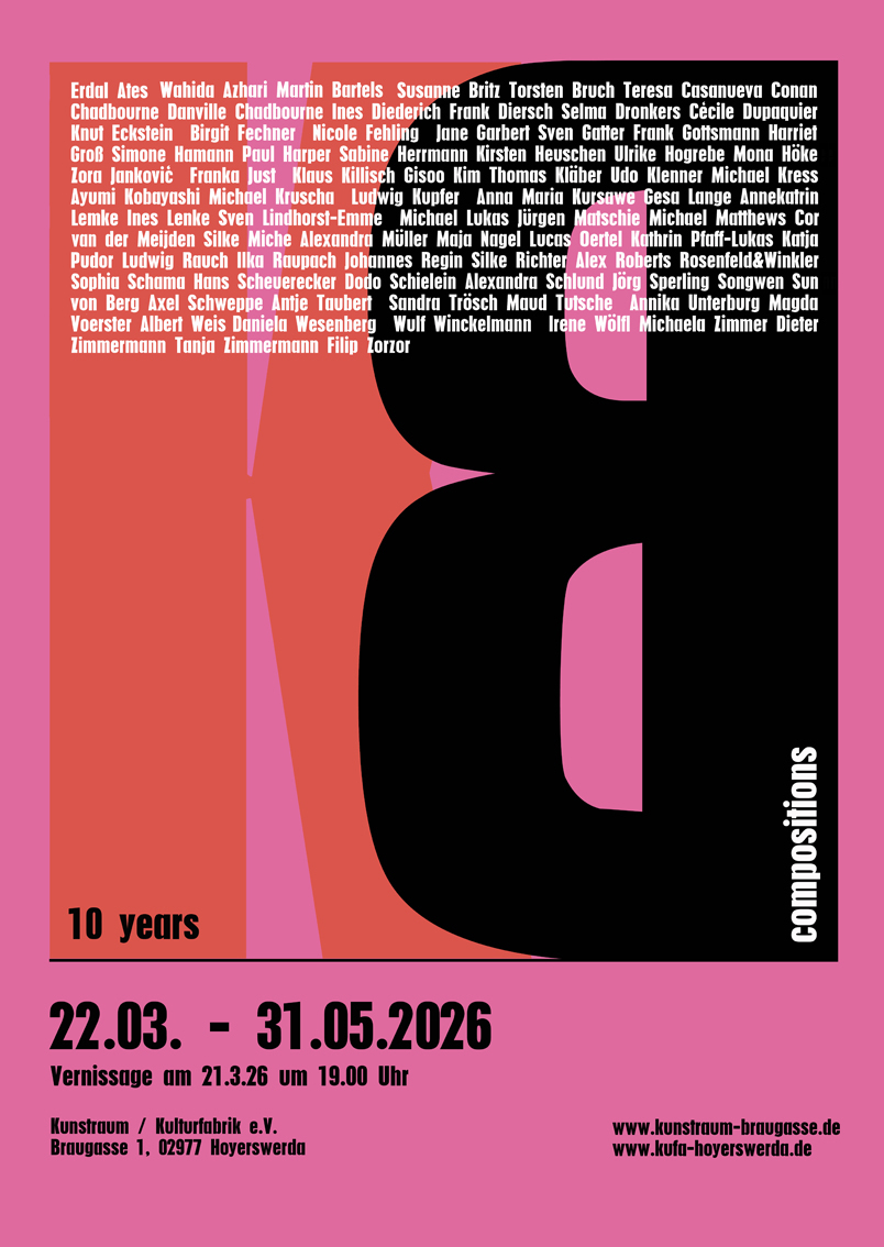 Opening am Freitag, den 25.07 ab 17 Uhr bis open end / 26.- 30.07. 2025 / Finissage am Abend des 30.07. / Öffnungszeiten täglich von 14-20 Uhr // Opening on Friday, 25 July from 5 p.m. until open end / 26–30 July 2025 / Closing event on the evening of 30 July / Opening hours daily from 2–8 p.m.